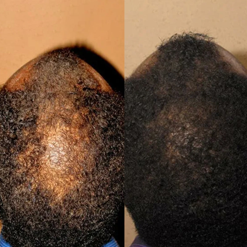 "I’ve struggled with thinning hair and a receding hairline for years and tried every treatment under the sun. This Stimulating Balm is a game-changer. The blend of Shea and Mango butter feels premium—it’s thick enough to feel substantial but melts right into the scalp without leaving my hair looking greasy or weighed down. After just 4 weeks of consistent use, I’m seeing real new growth in areas that were thinning out. It’s definitely revitalized my scalp health." -